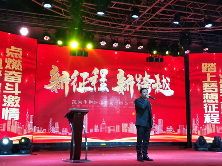公司總裁王鐵良先生首先總結(jié)公司十余年的奮斗歷程,“從冰雪到綠原,那是冬天走向春天的路,從失敗到成功,那是披襟斬棘闖出來的路,凱為人十余載風(fēng)雨同舟,不負(fù)韶華。過去的一年是我們公司創(chuàng)新業(yè)績、重振區(qū)域品牌的一年,2019年公司不僅實現(xiàn)了銷售收入同比增長,而且公司新增養(yǎng)殖基地三個,新建培訓(xùn)中心已納入養(yǎng)殖服務(wù)板塊,新建檢測中心納入客戶服務(wù)體系。實踐證明:我們一直用凱為的價值觀衡量我們的行動向共同美好的愿景持續(xù)奮進(jìn)!正是因為你們的付出和攜手奮進(jìn)才有今天的凱為。我代表公司感謝所有員工的努力和敬業(yè),同時更要感謝你們的家人,正是他們默默的支持和奉獻(xiàn),使你們能全身心的投入工作,在此,我衷心的祝愿你們健康快樂!萬事如意??!”