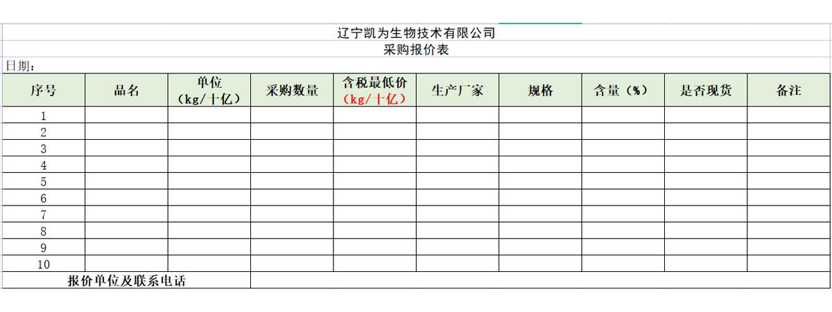 遼寧凱為生物技術(shù)有限公司采購報價表