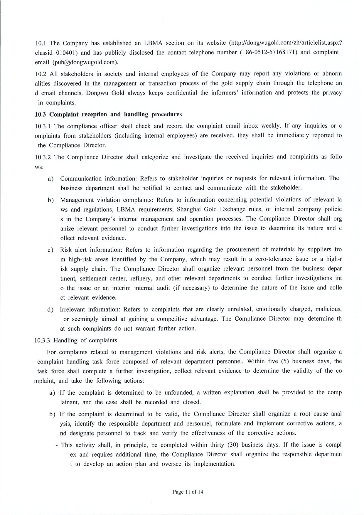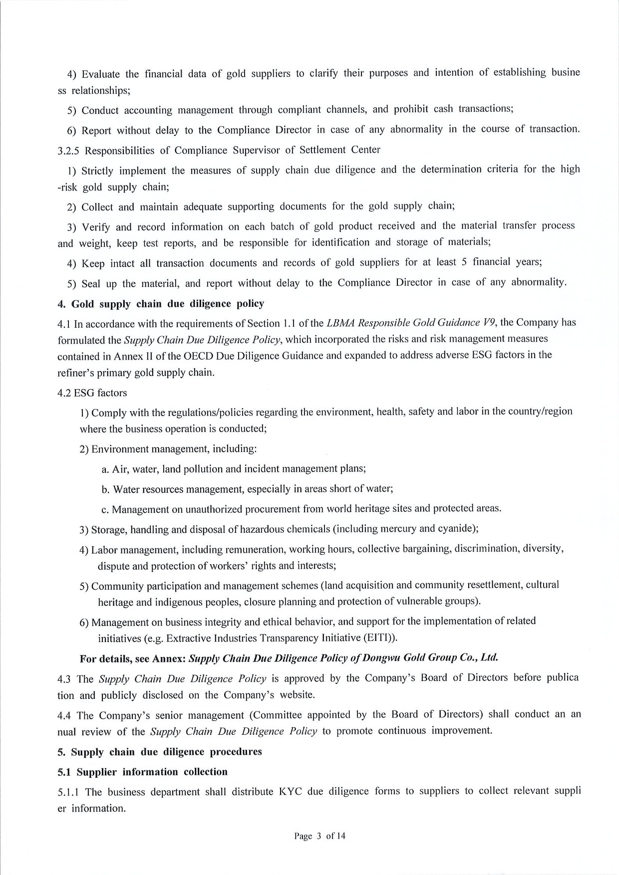 Management Measures for Supply Chain Due Diligence Dongwu Gold Group Co., Ltd(Version: G)